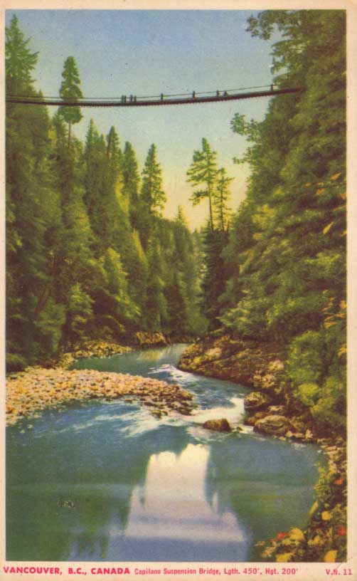 Capilano-Suspension-Bridge August 9, 2014 502 × 816 in Bridges As Depicted on Vintage Postcards About 1951. This is an amazing suspension bridge!